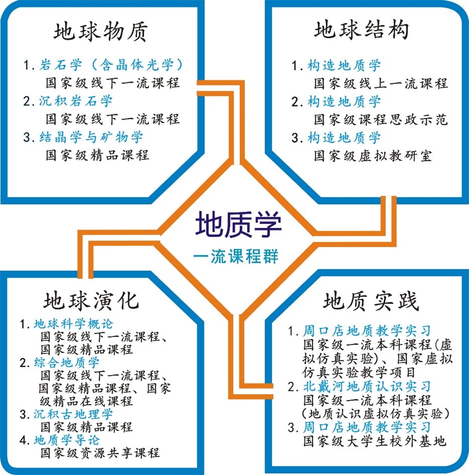 基于地质学课程时空宽广、实践性强的特点,课程团队开展持续的课程建设和改革,该成果在国家级课程、实验平台、系列教材、师资队伍等建设方面取得系列进展,在国内同类专业课程建设方面具有引领作用。