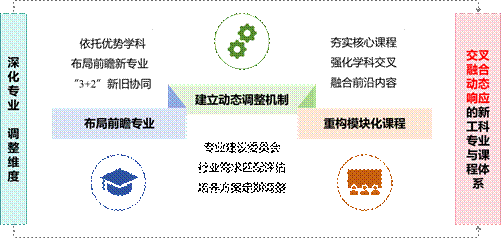 图3“交叉融合、动态响应”的新工科专业与课程体系