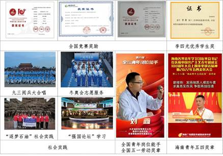 学生家国情怀深厚:学生家国情怀深厚,积极参与抗疫志愿服务、国庆70周年阅兵、北京冬奥会等重大活动。近五年超过200名毕业生主动选择扎根新疆、青海等西部艰苦地区,投身能源一线。涌现出全国青年岗位能手、全国五一劳动奖章获得者刘鑫,全国见义勇为模范何伟,海南青年五四奖章获得者曾维特,李四光优秀学生奖获得者李倩、久博等一批先进典型。(图6)