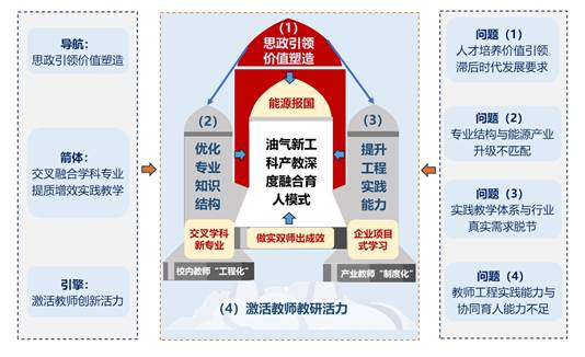 (1)理念创新:确立了“使命驱动、交叉赋能、场景育人”的油气新工科教育理念
