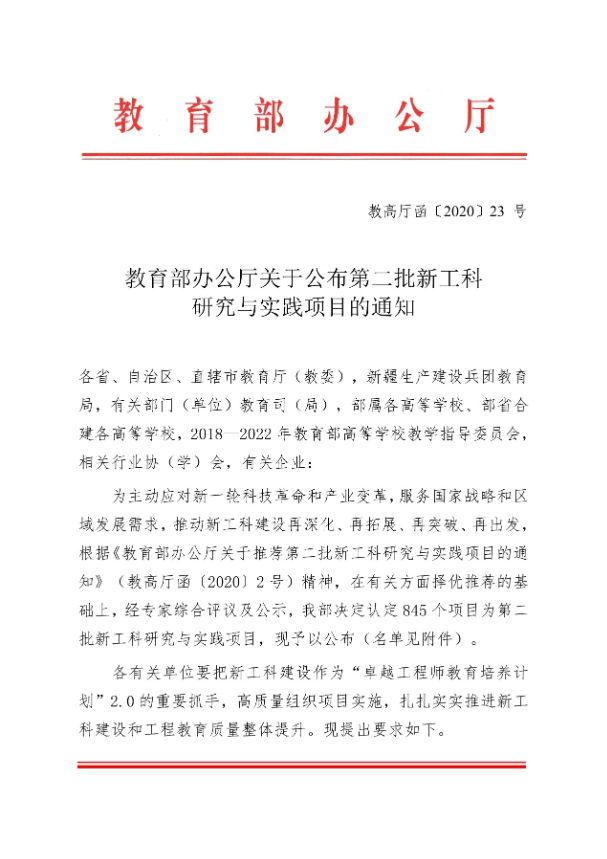 奖励1:第二批新工科研究与实践项目 |