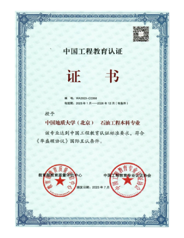 奖励6:中国工程教育专业认证—石油工程 |