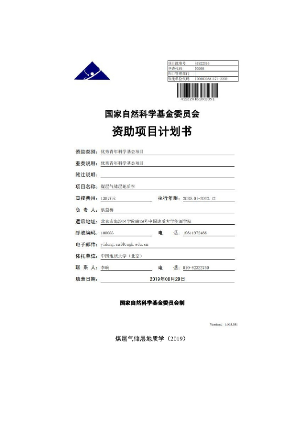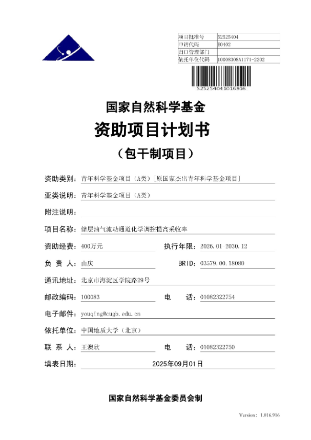 10. 奖励10:青年科学基金项目(A类)[原国家杰出青年科学基金项目]:由庆