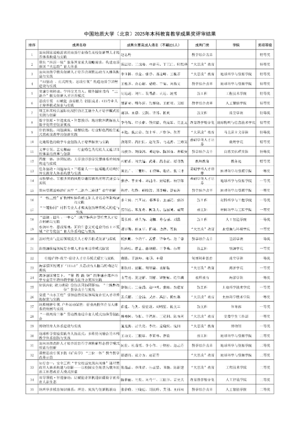 奖励14:中国地质大学(北京)教育教学成果奖一等奖 |