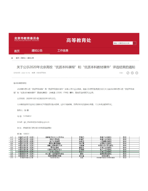 奖励19:北京市课程思政示范课程、教学名师和团队—《高等油藏工程》 |