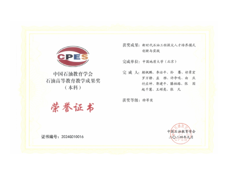 15. 奖励15:中国石油教育学会石油高等教育教学成果特等奖