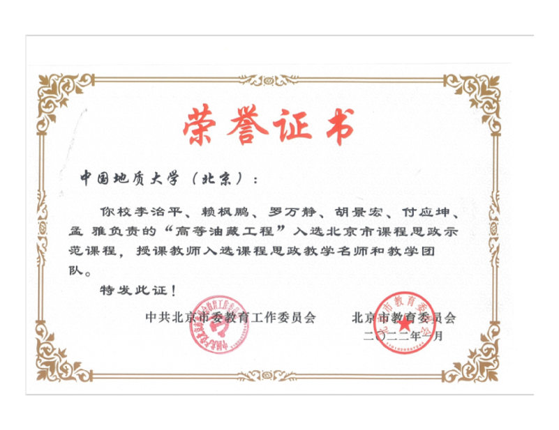 19. 奖励19:北京市课程思政示范课程、教学名师和团队—《高等油藏工程》