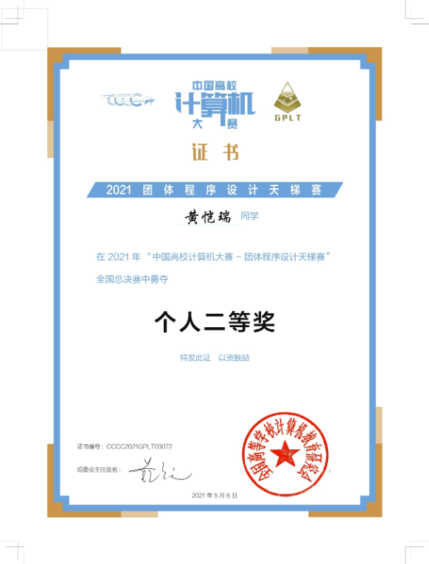 29. 奖励29:中国高校计算机大赛-程序设计天梯赛—团队一等奖