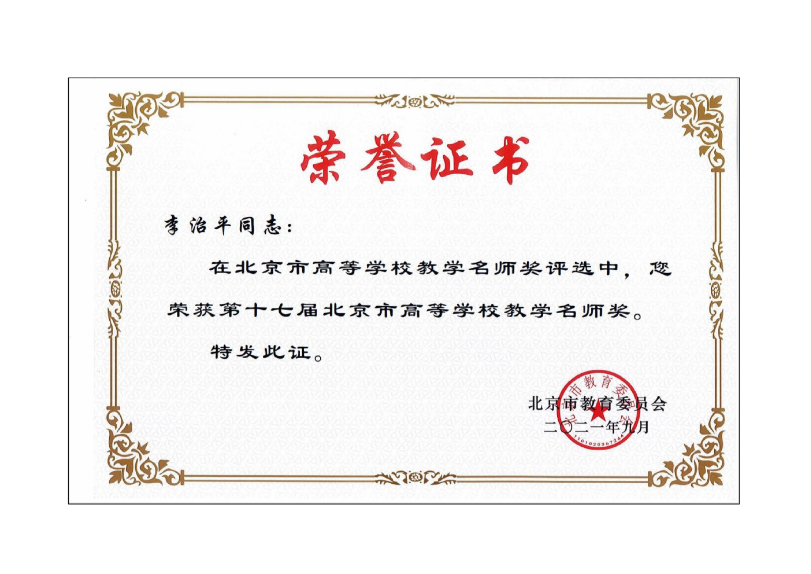奖励24:北京市高等学校教学名师-李治平 |