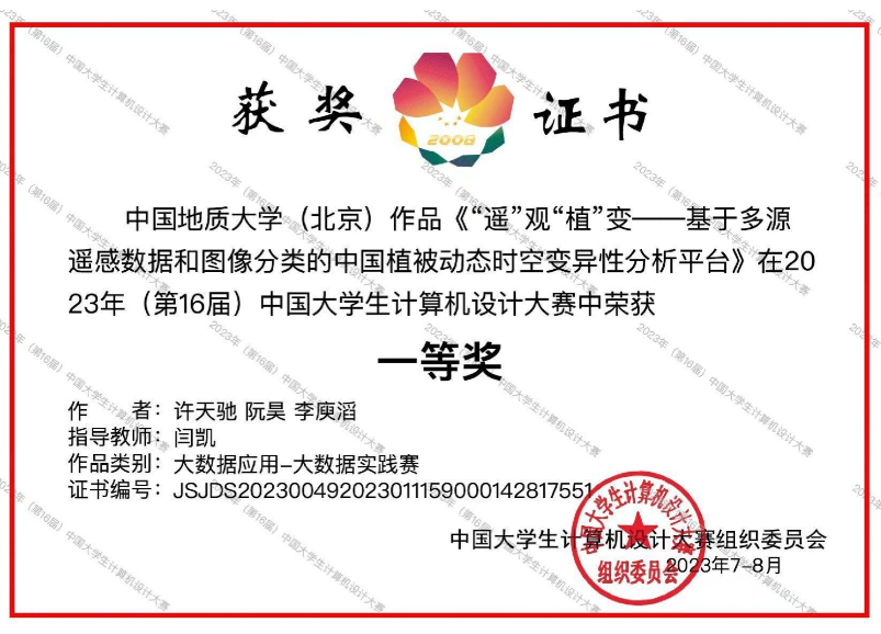 奖励28:中国大学生计算机设计大赛一等奖 |