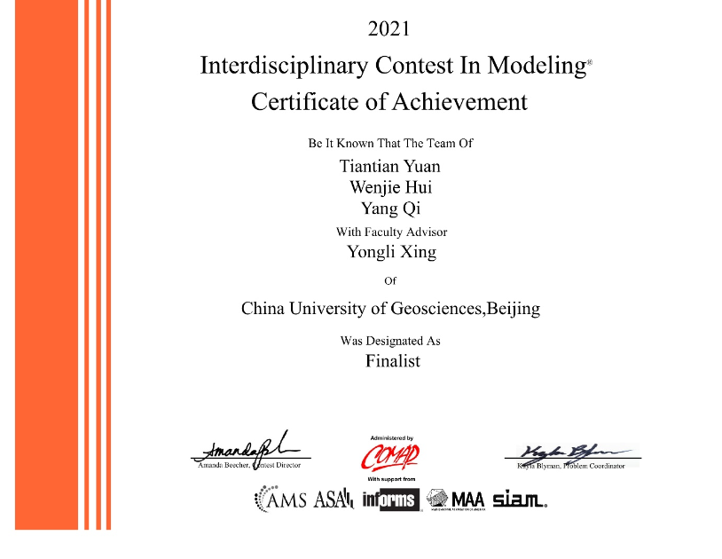 奖励30:美国大学生数学建模竞赛特别提名奖 |