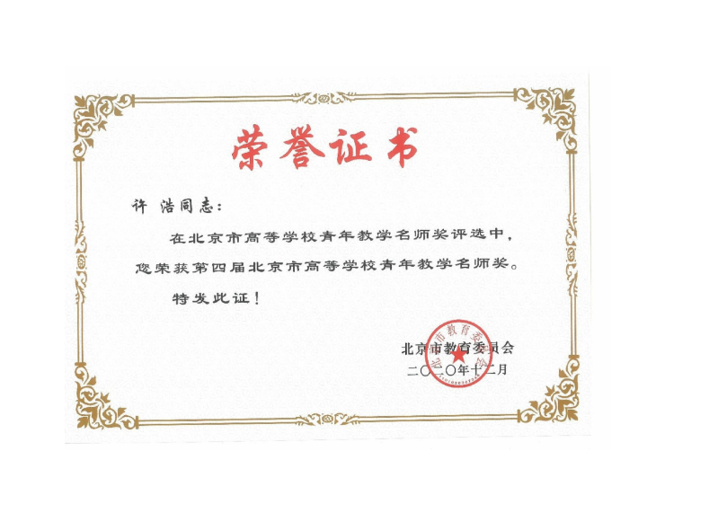 奖励27:北京市高等学校青年教学名师:许浩 |