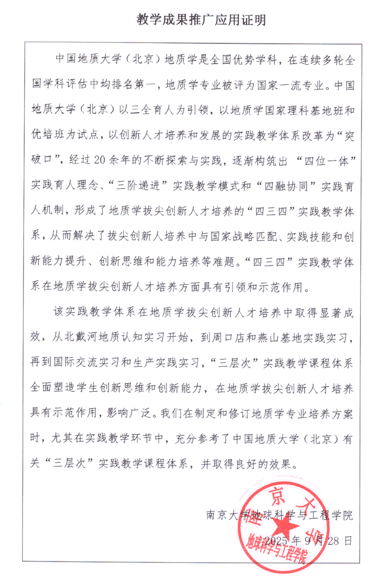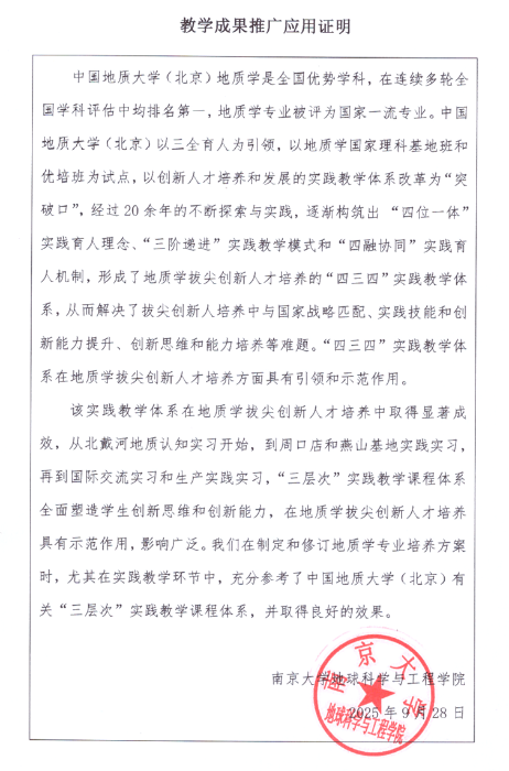 11415004-面向地球科学拔尖创新人才培养的“四三四”实践育人体系构建与实施