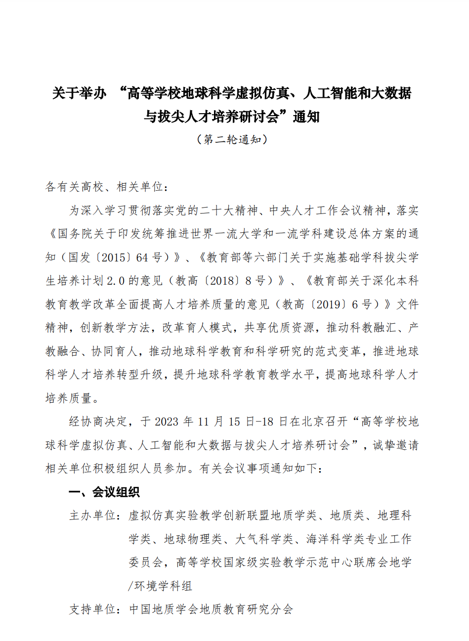 二、全国地球科学人工智能与拔尖人才培养研讨会(