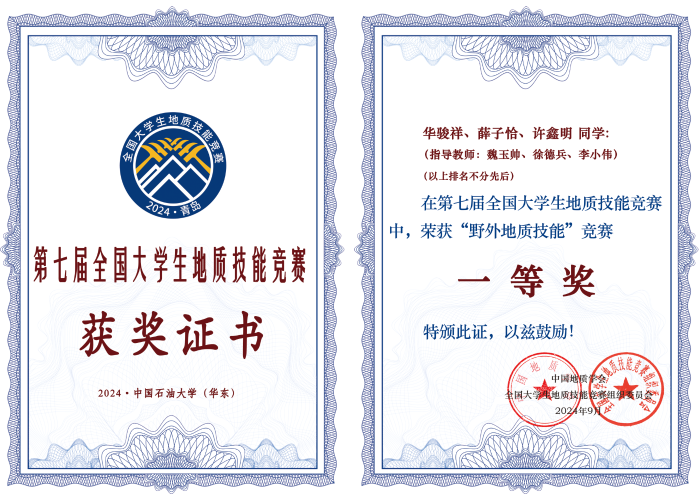 2024 第七届全国大学生地质技能竞赛“野外地质技能”一等奖2项