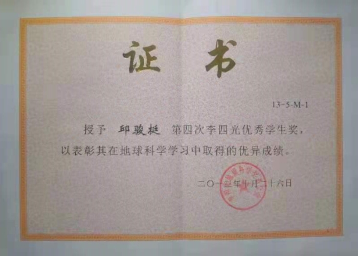 2013 李四光优秀学生奖-邱骏挺 国家级 李四光优秀学生奖委员会