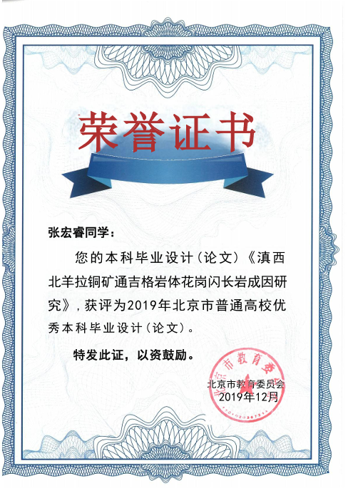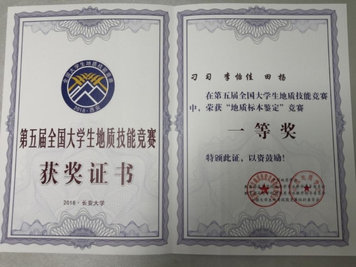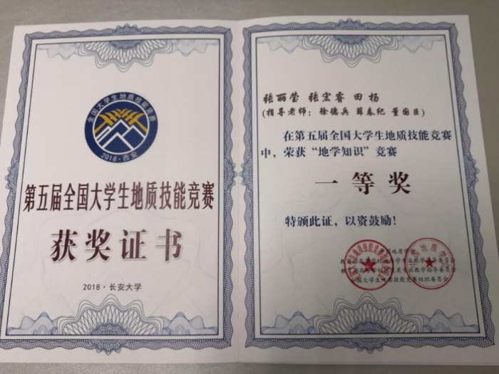 2018 张丽莹,张宏睿,田杨 第五届全国大学生地质技能竞赛 地学知识竞赛一等奖