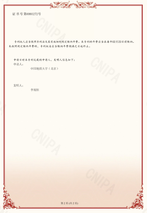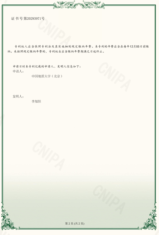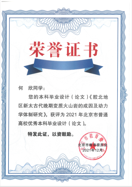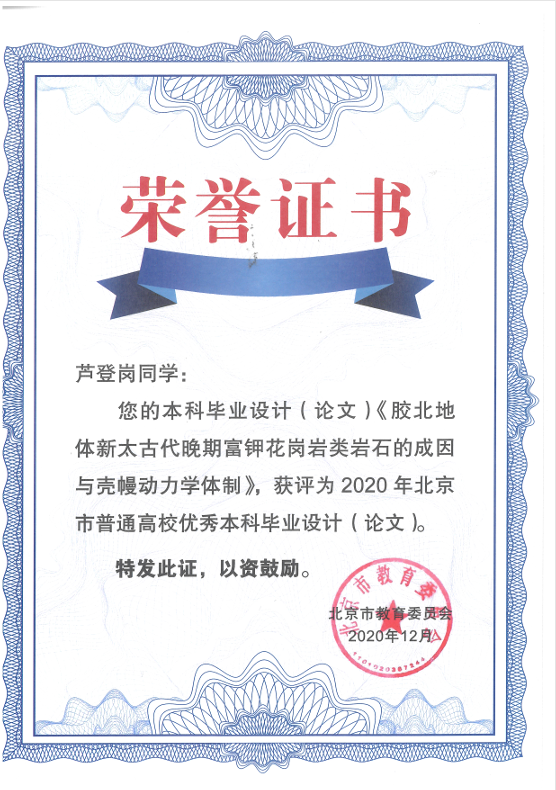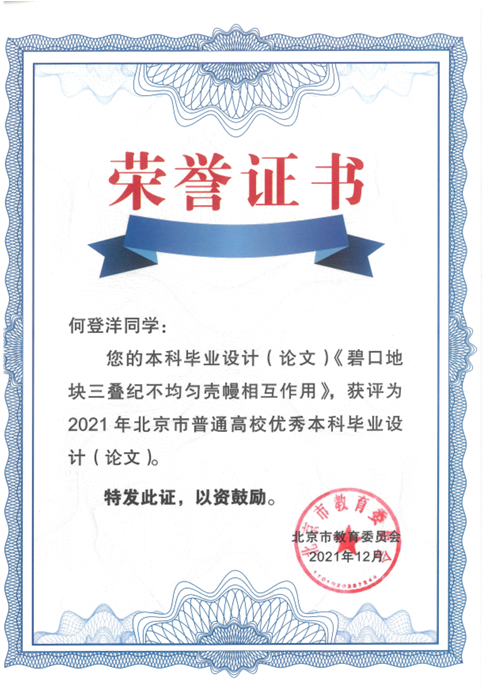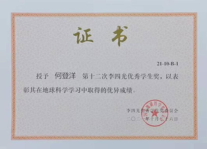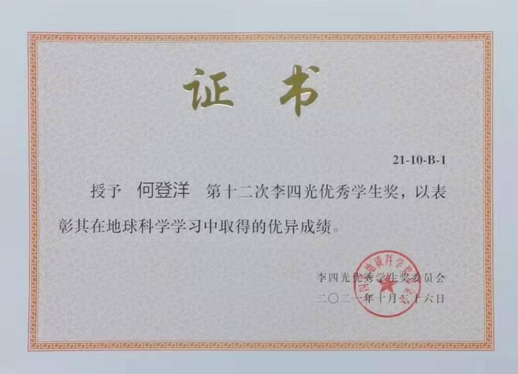2021 李四光优秀学生奖-何登洋 国家级 李四光优秀学生奖委员会