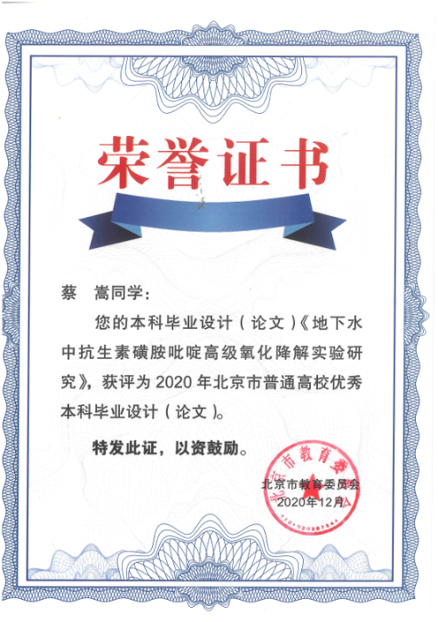 4. 2020-蔡嵩-陈家玮地下水中抗生素磺胺吡啶高级氧化降解实验研究