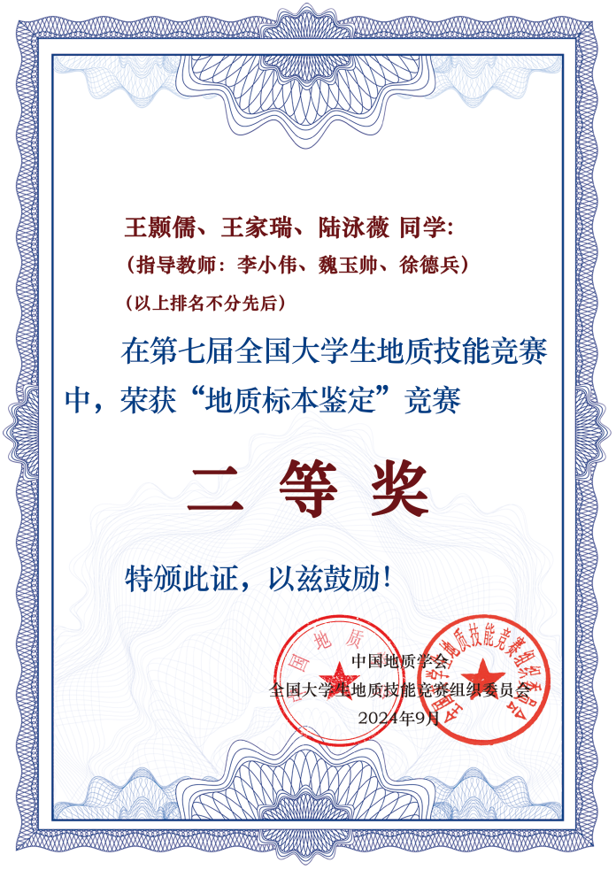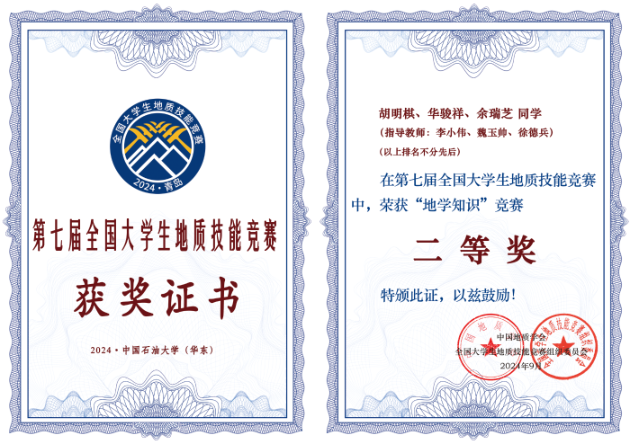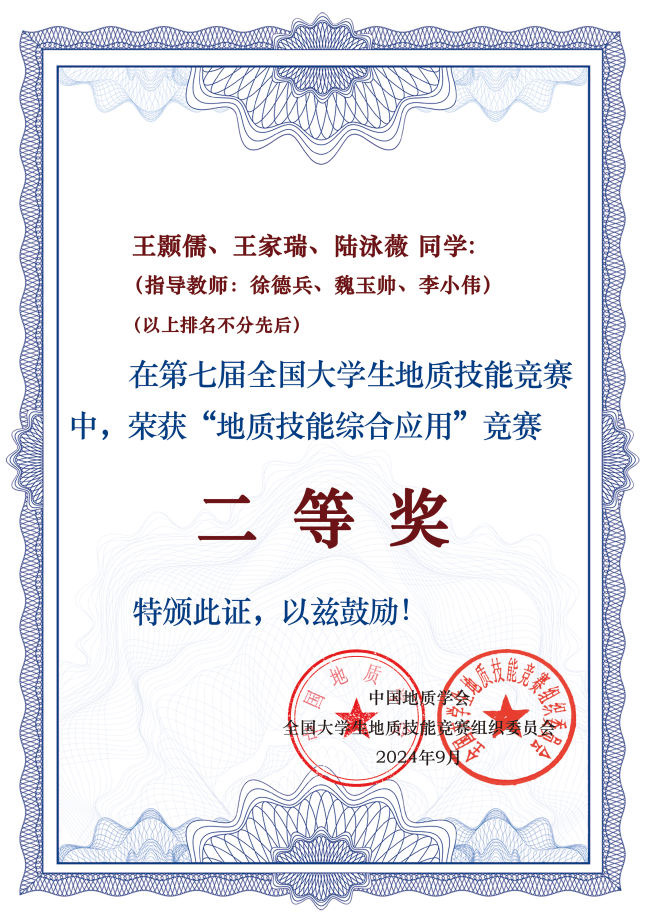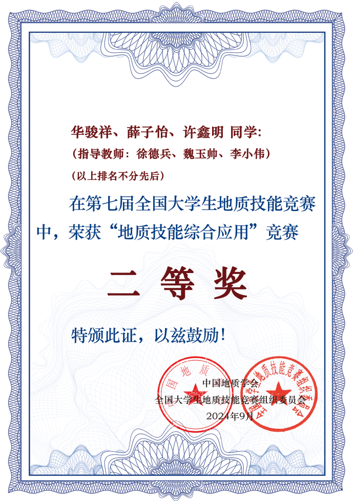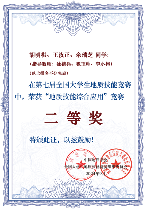 2024,第七届全国大学生地质技能竞赛“地质技能综合应用”二等奖3项
