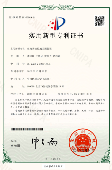 .2023董祥瑞 王凯颀 雷炳力 贾梓钊 实用新型专利:市政基础设施检测装置