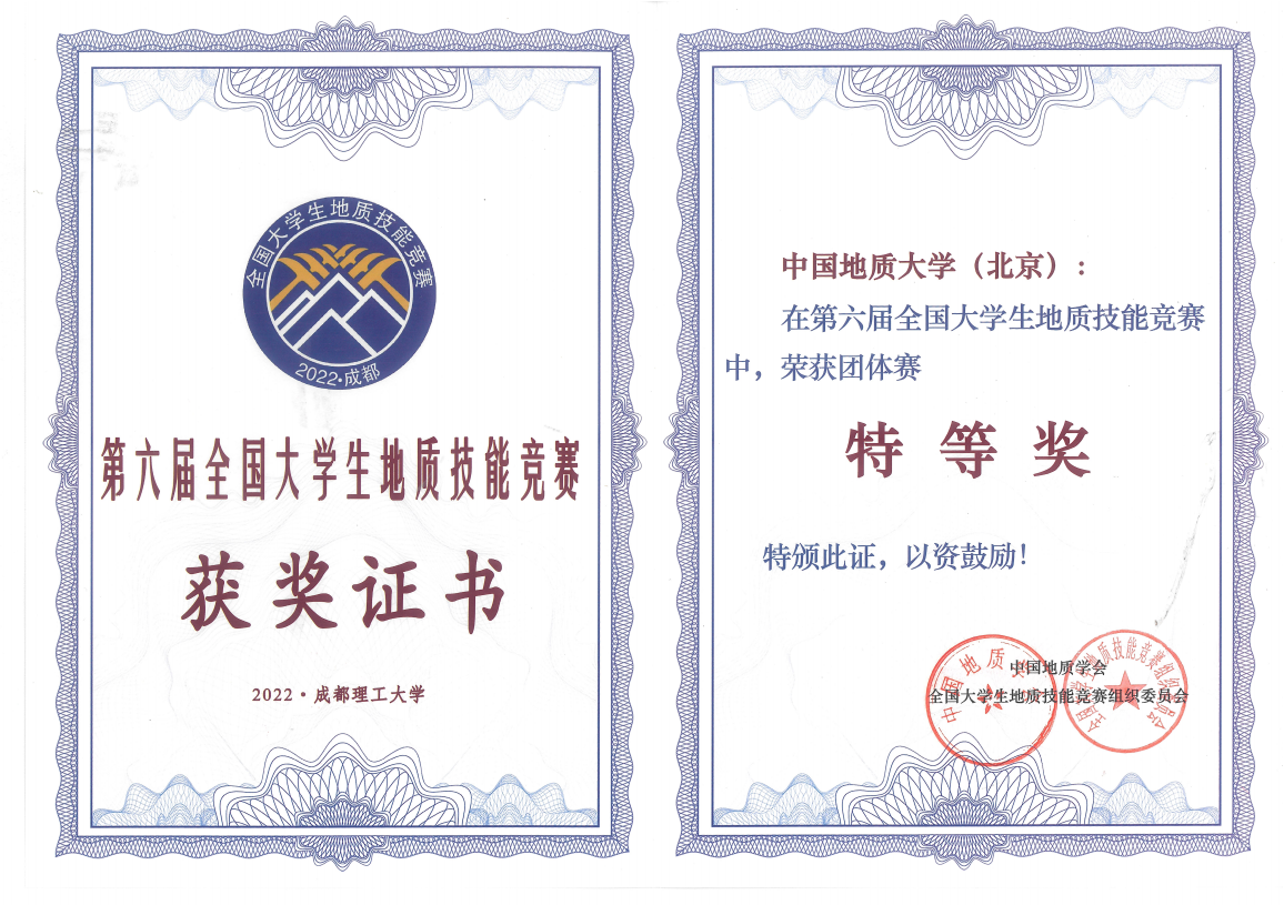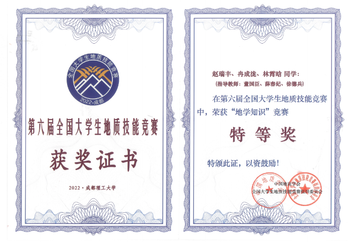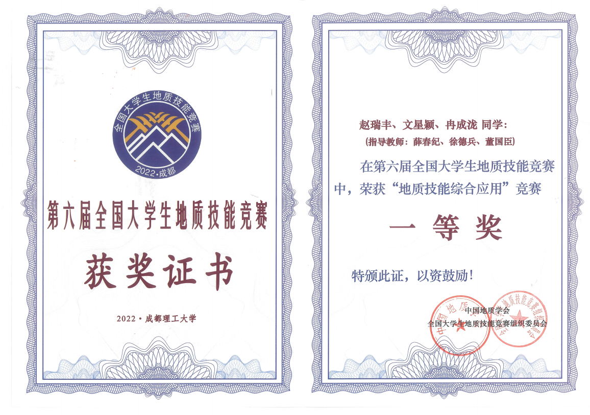 2022 赵瑞丰、文星颖、冉成泷 第六届全国大学生地质技能竞赛 地质技能综合应用一等奖