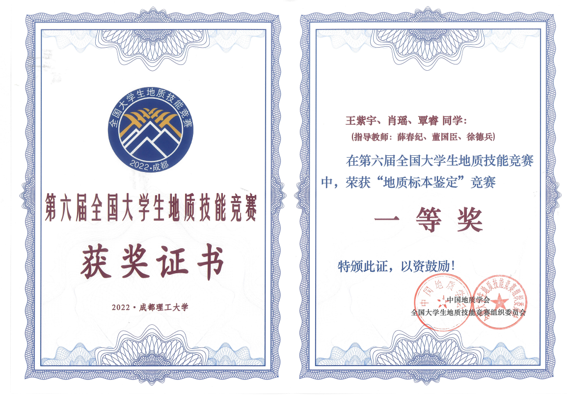 2022 王紫宇、肖瑶、覃睿 第六届全国大学生地质技能竞赛 地质技能综合应用一等奖