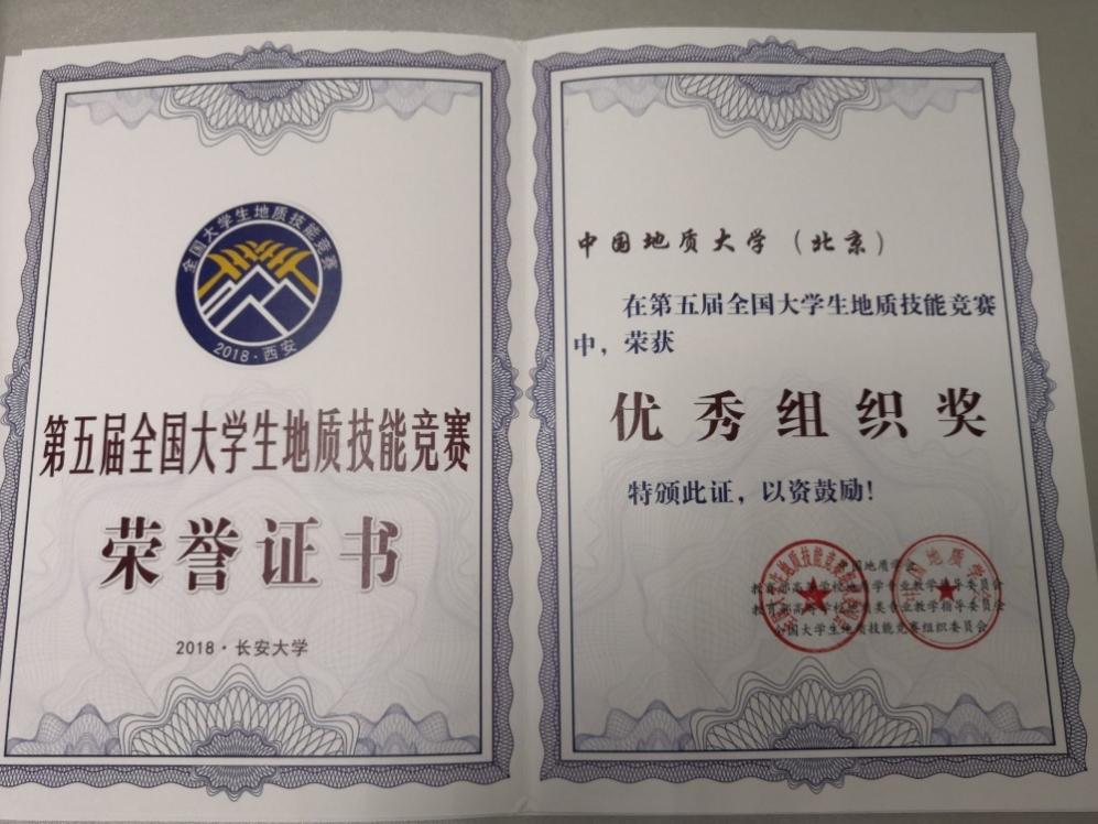 2018 中国地质大学(北京) 第五届全国大学生地质技能竞赛 优秀组织奖