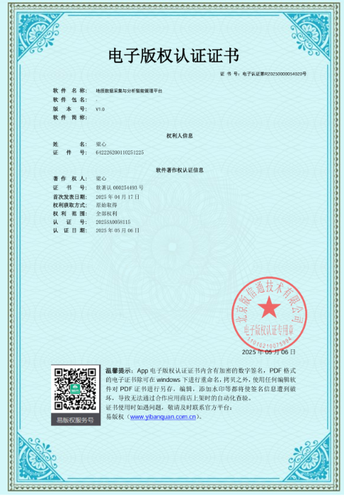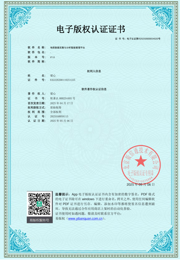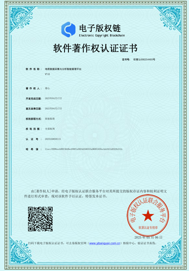 .2025 梁心 软件著作权:地质数据采集与分析智能管理平台V1.0