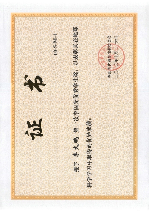 2010 李四光优秀学生奖-李大鹏 国家级 李四光优秀学生奖委员会