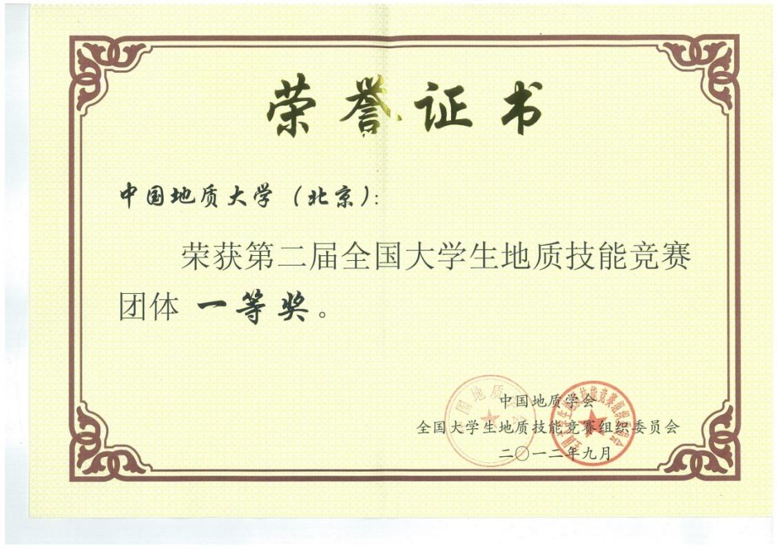 2012 中国地质大学(北京)第二届全国大学生地质技能竞赛 团体一等奖