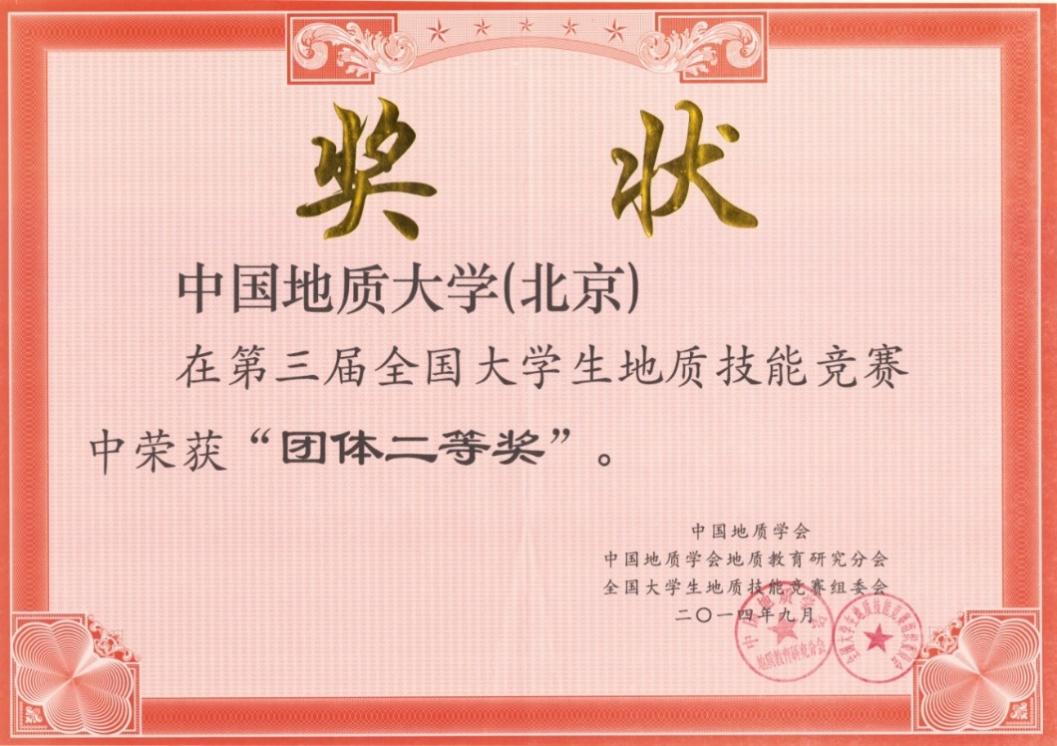2014 中国地质大学(北京)第三届全国大学生地质技能竞赛 团体二等奖