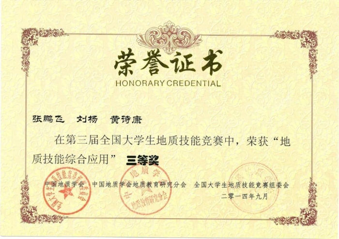 2014 张鹏飞,刘杨,黄诗康 第三届全国大学生地质技能竞赛 地质技能综合应用三等奖