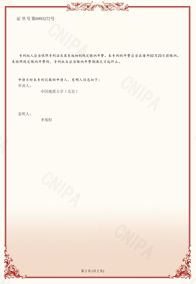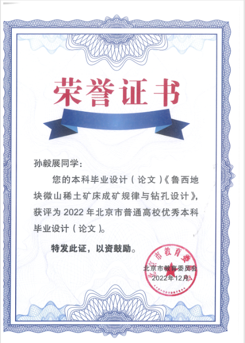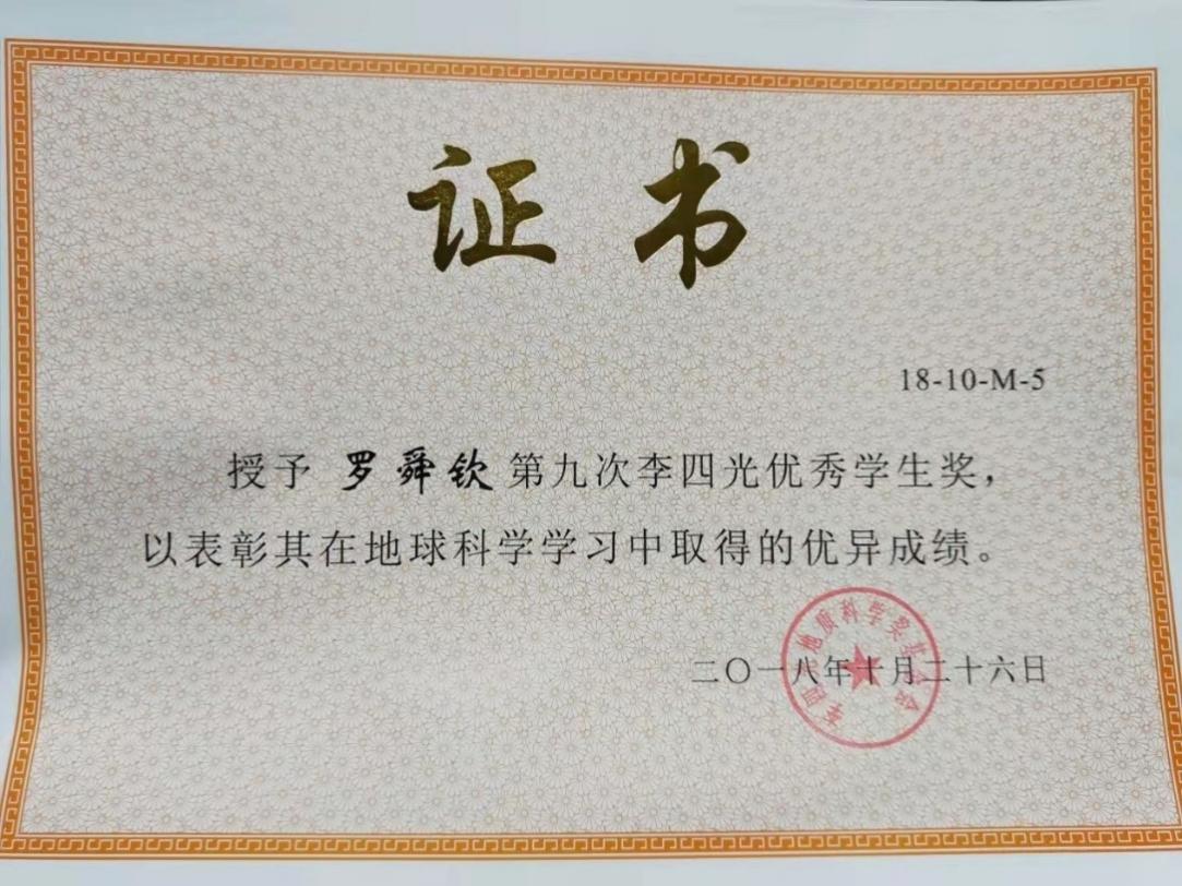 2018 李四光优秀学生奖-罗舜钦 国家级 李四光优秀学生奖委员会