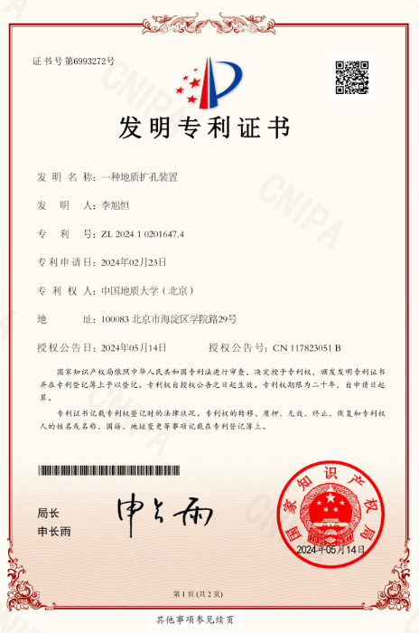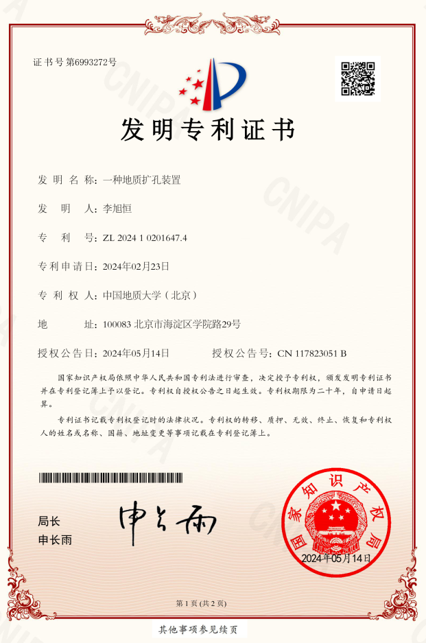 2. 2024 王博洁 董国臣 实用新型专利:一种岩石矿物粒径便携式测量仪