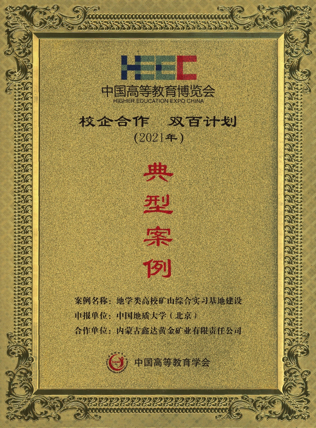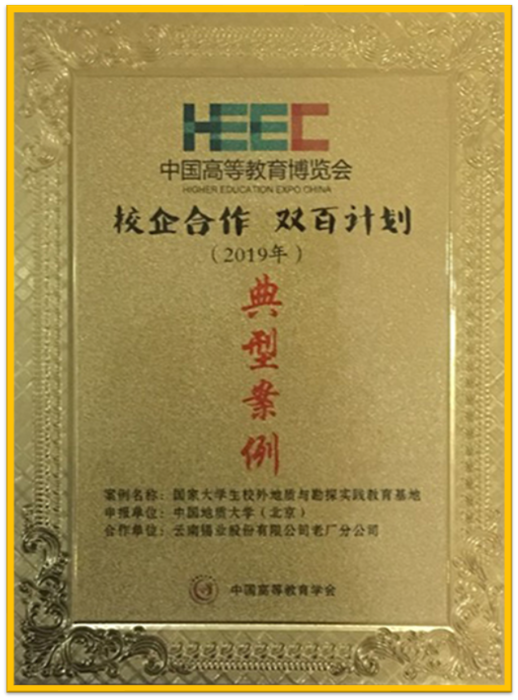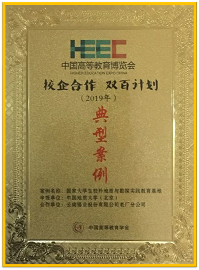 2019年,校企合作双百计划,国家大学生校外地质与勘探实践教育基地,中国高等教育学会