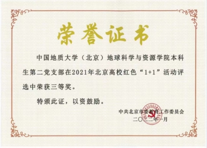 022 北京高校红色“1+1””活动三等奖 北京市级 北京市教工委