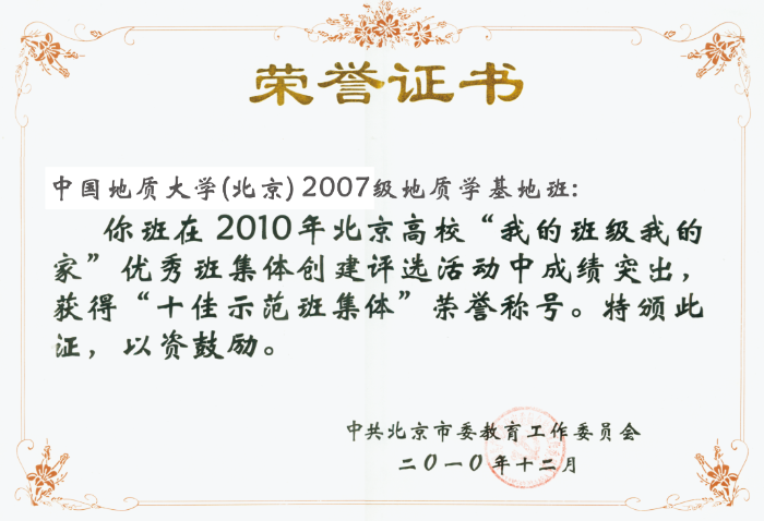2010 2007级地质学基地班 北京市十佳示范班集体 北京市级 北京市教工委