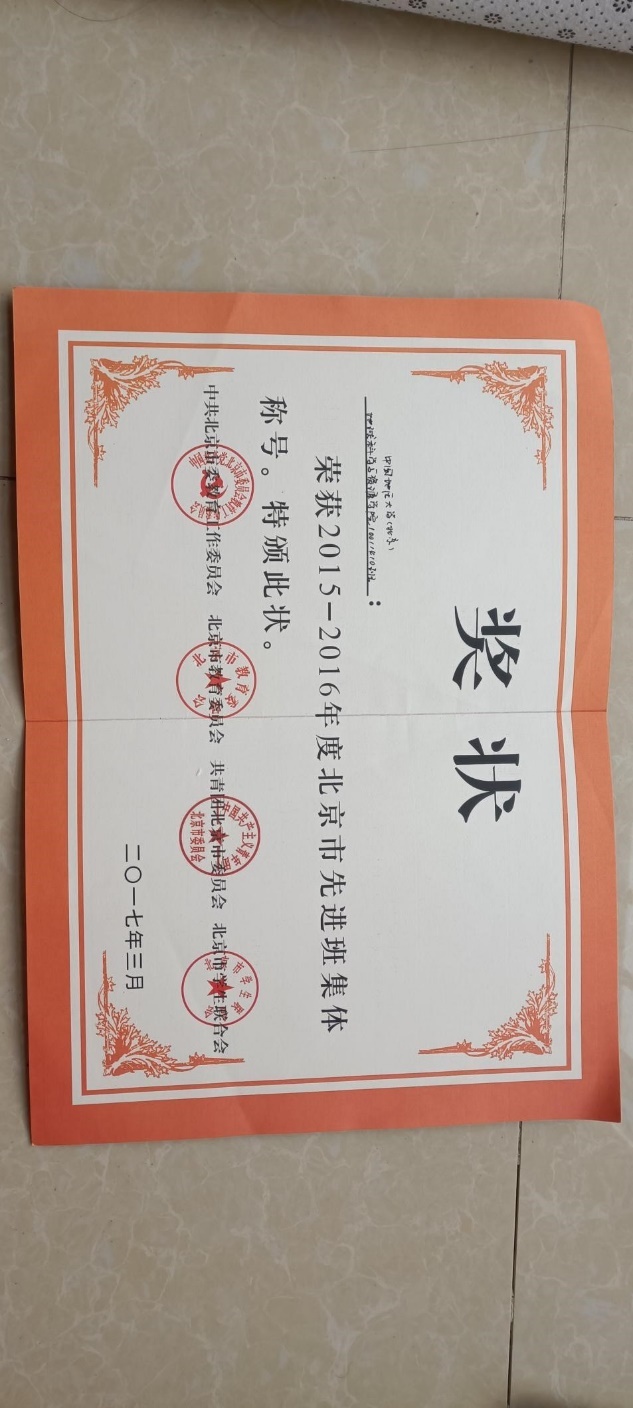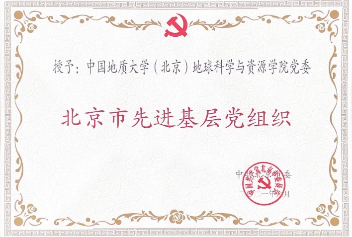 2021年, 北京市先进基层党组织证书,中国共产党北京市委员会