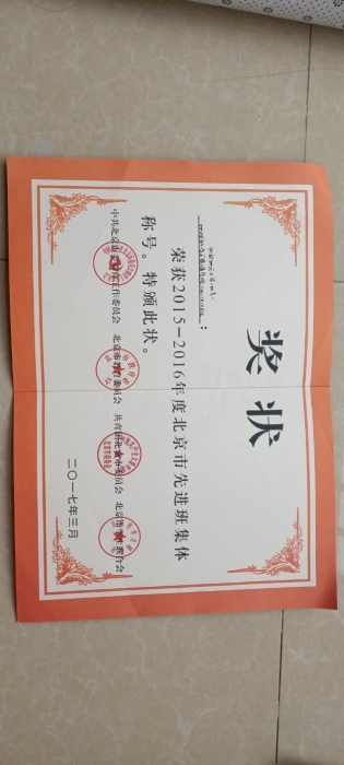 2015 北京市先进班集体-10011110班 北京市级 北京市教工委