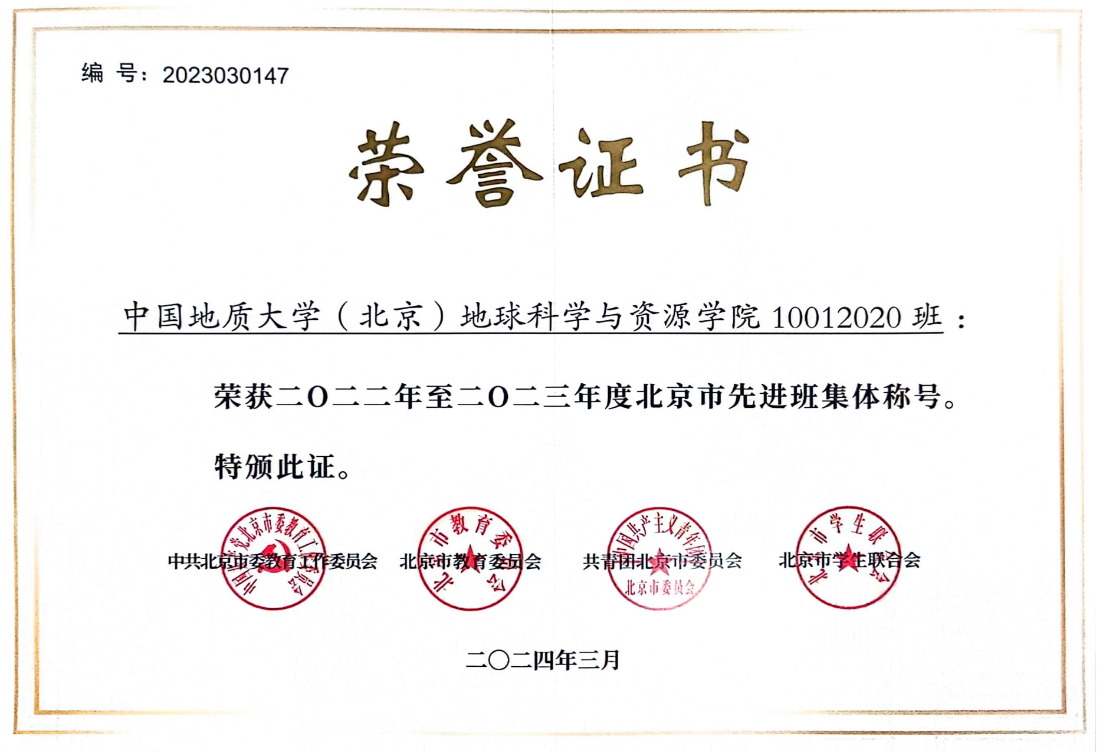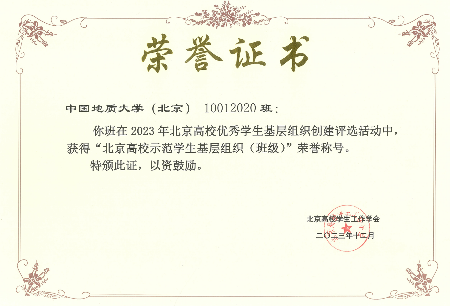 2024 北京市高校示范学生组织(班级) 10012020班北京市级 北京市教工委
