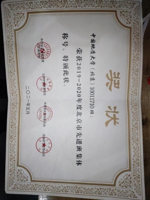 2020 北京市先进班集体-10011710班 北京市级 北京市教工委