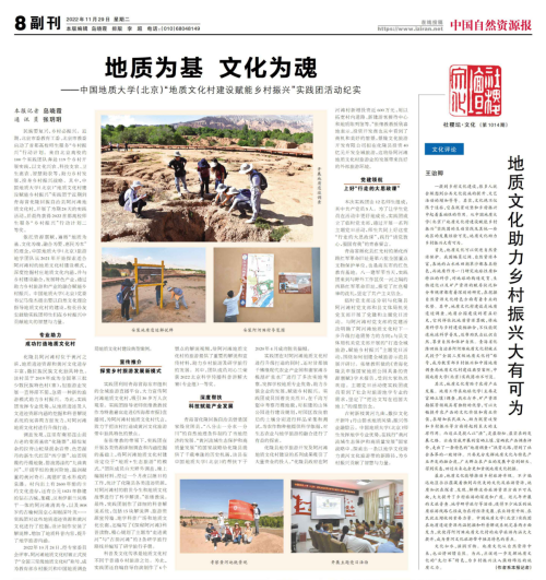 (11)中国自然资源报(2022年11月29日)报道:地质为基 文化为魂 ——中国地质大学(北京)“地质文化村建设赋能乡村振兴”实践团活动纪实