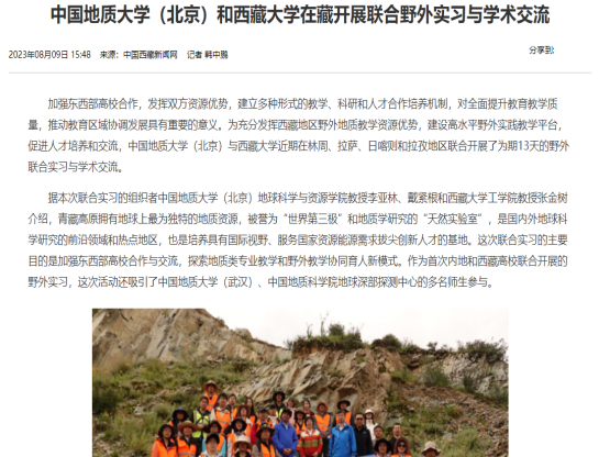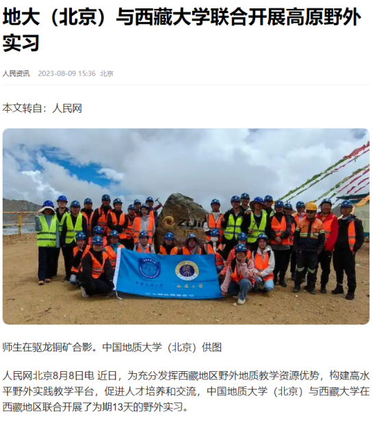 (13)人民网(2023年8月9日):地大(北京)与西藏大学联合开展高原野外实习