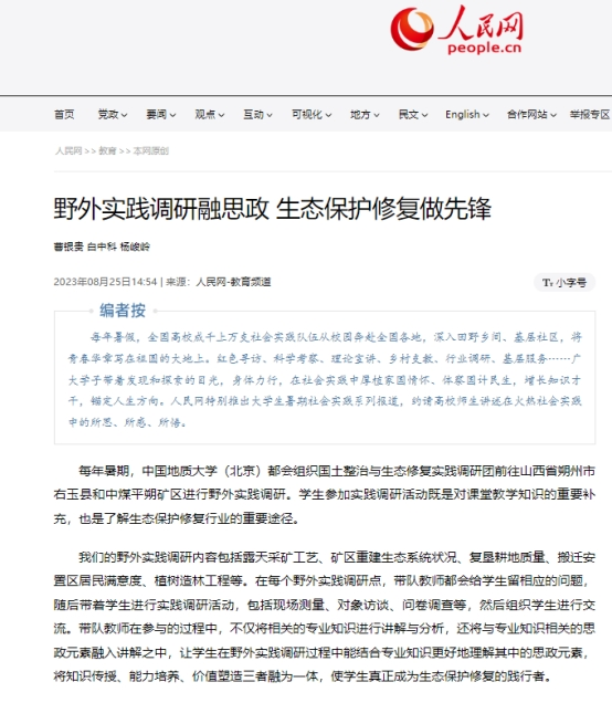(15)人民网(2023年8月25日):野外实践调研融思政 生态保护修复做先锋