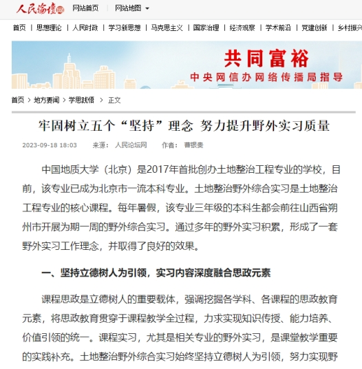 (16)人民论坛(2023年9月18日):牢固树立五个“坚持”理念 努力提升野外实习质量