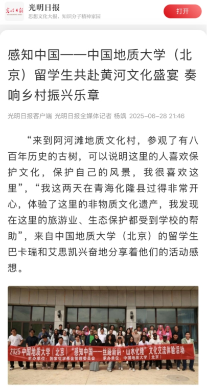 (20)光明日报客户端(2025年6月28日):感知中国——中国地质大学(北京)留学生共赴黄河文化盛宴 奏响乡村振兴乐章