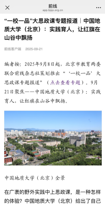 (21)前线客户端(2025年9月21日):“一校一品”大思政课专题报道|中国地质大学(北京):实践育人,让红旗在山谷中飘扬