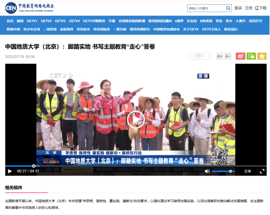 (22)中国教育电视台(2023年7月18日):中国地质大学(北京):脚踏实地 书写主题教育“走心”答卷