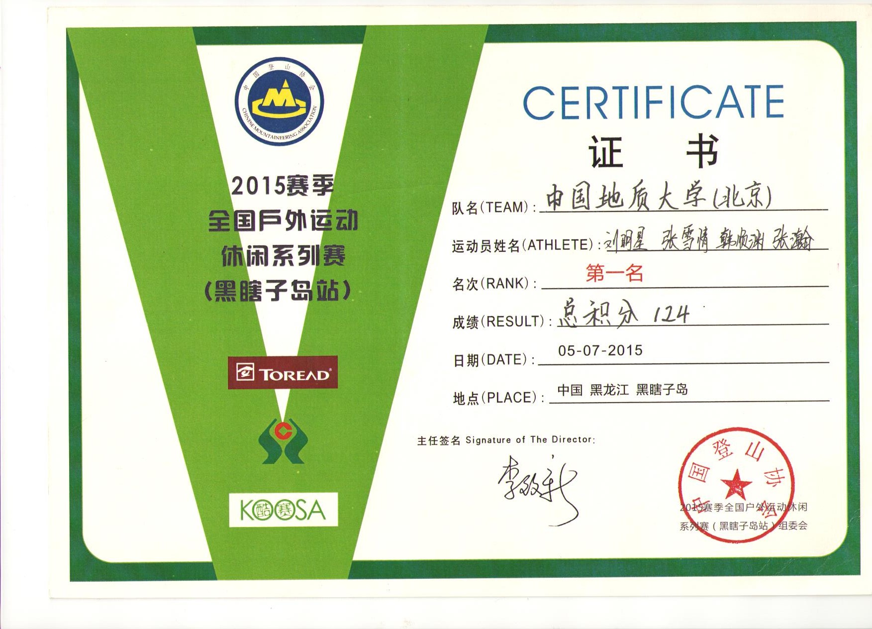 2015赛季全国户外运动休闲系列赛(黑瞎子岛站)第一名